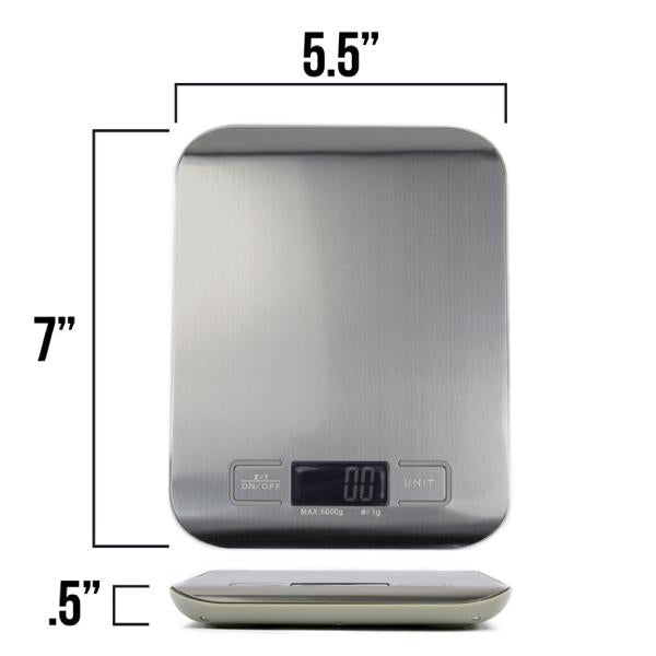 Puede elegir fácilmente si desea su medición en onzas, libras, gramos o mililitros. Esta báscula digital mide con una precisión de 0.01oz (1g) para lecturas exactas. Funciona con 2 pilas AAA, lo que hace la escala portatil y asegurando que se puedan adquirir baterías de repuesto fácilmente.