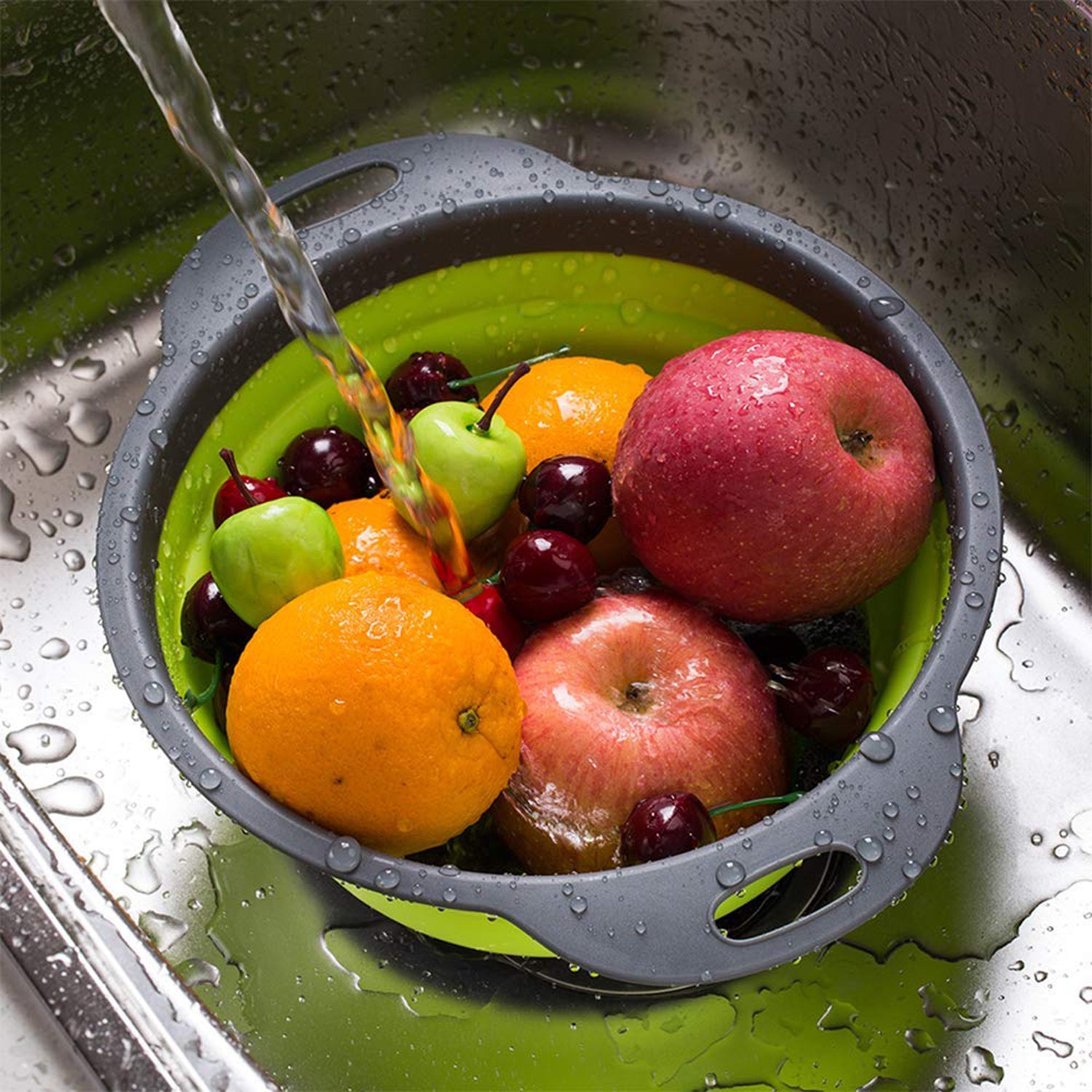 Es por eso que tenernos este fantástico este set de coladores de silicona que te permiten expandirlos fácilmente para crear un recipiente profundo para lavar o enjuagar tu comida sobre el fregadero en segundos.