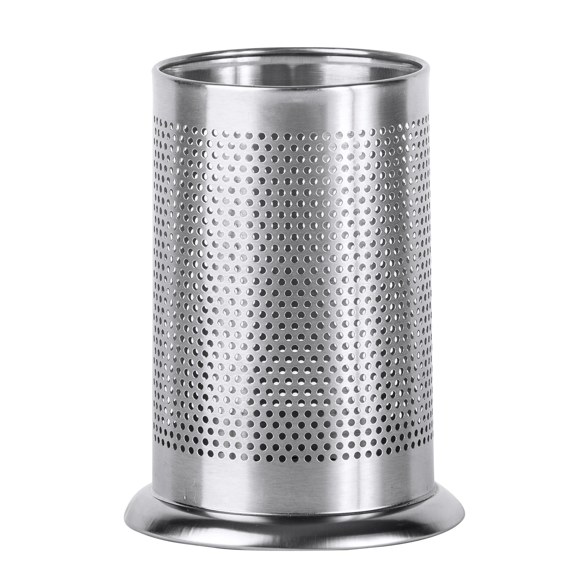 Diseñado con un fondo que mantiene los utensilios de forma vertical incluso cuando el organizador no está lleno. Sus agujeros recortados meticulosamente que cubren el recipiente permiten que los utensilios se sequen mediante el drenaje de líquidos.