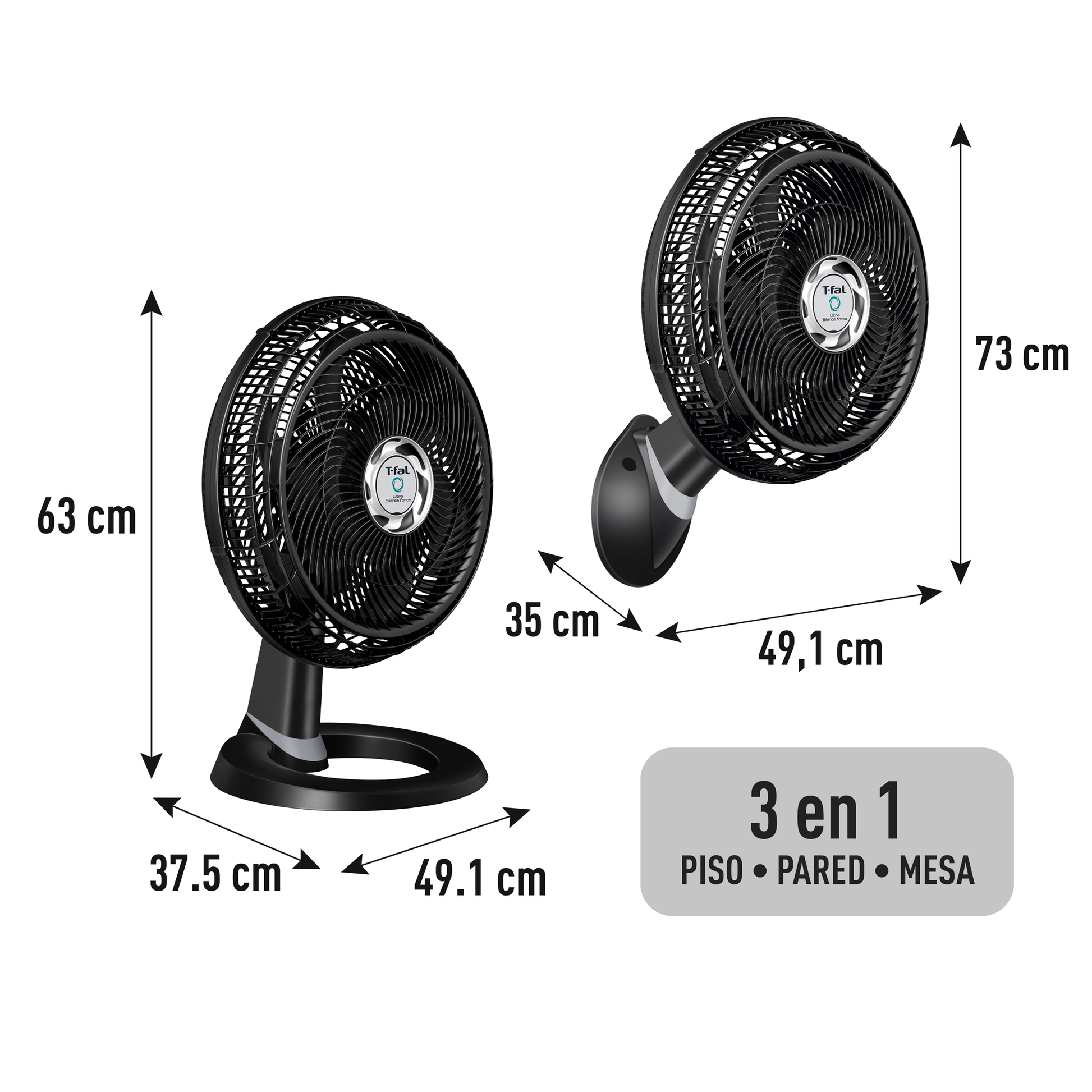 Una de las características destacadas es su funcionamiento ultra silencioso, con solo 71 dB de ruido. Es un ventilador 3 en 1, lo que significa que puede ser utilizado como ventilador de piso, de pared o de mesa, brindando versatilidad en su uso.