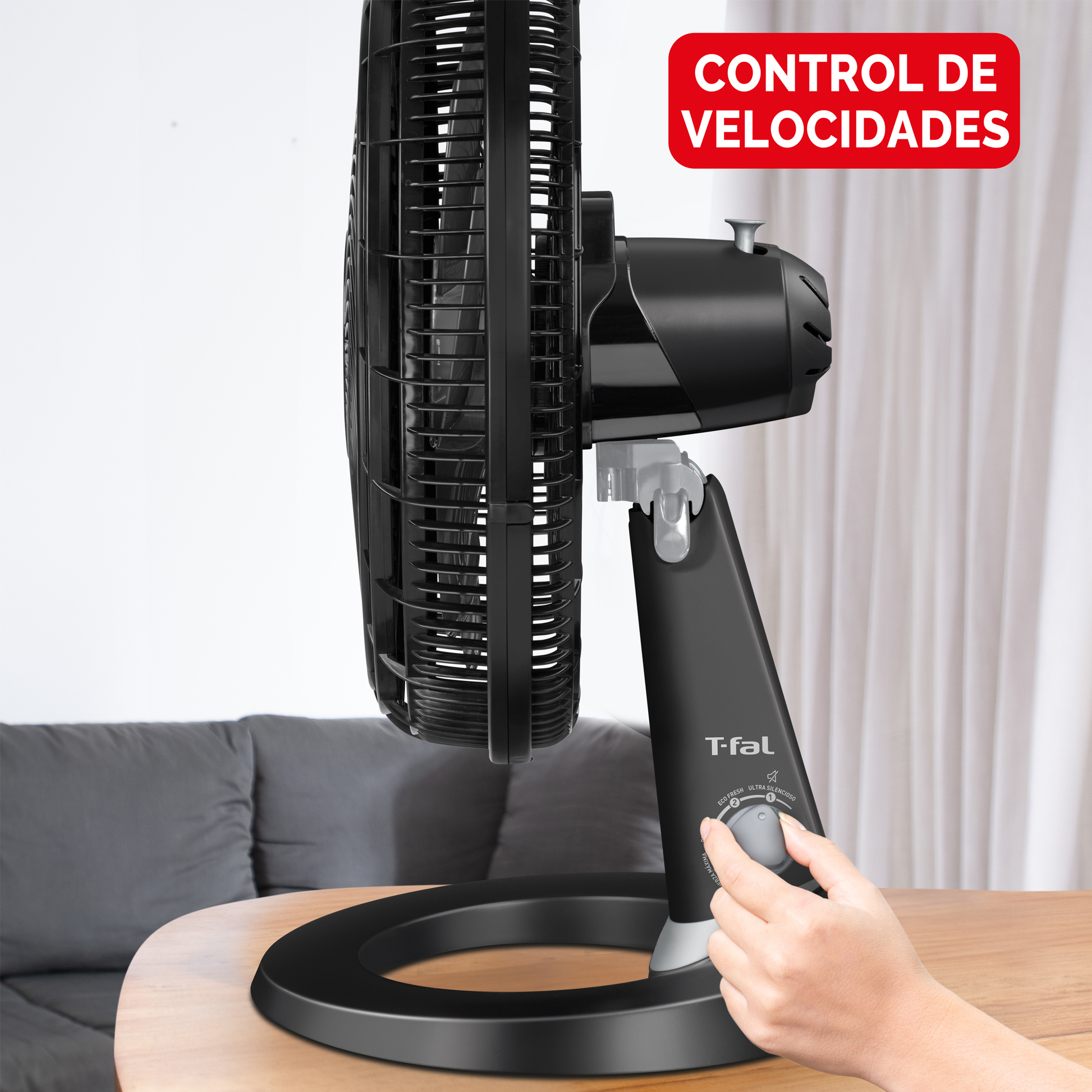El ventilador es un producto de T-fal con un diseño elegante y moderno. Fabricado en plástico de alta calidad, este ventilador cuenta con un cable de alimentación de 169 cm de largo y tiene una potencia eléctrica de 100W. Utiliza la tecnología Power Zone para proporcionar un rendimiento óptimo.